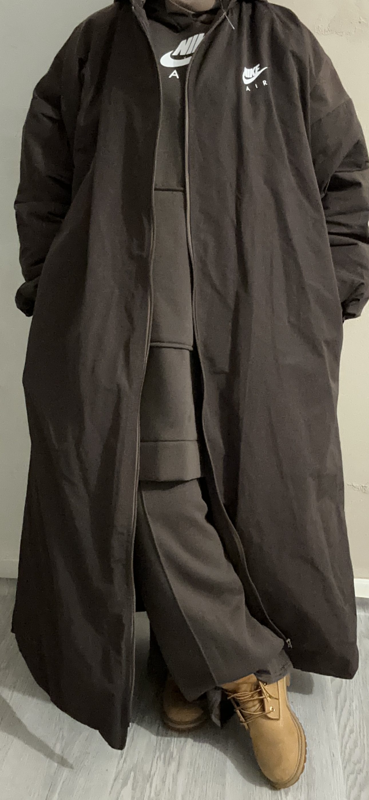 magnifique, K-Way, over size modèle coupe-vent avec capuche double poche latérale ça coupe authentique parfait aussi pour les grandes tailles. La mannequin fait 1,61 m et du S. Le K-Way est une taille unique qui convient d'un 36 à un 48. Voir 50 ouvert.