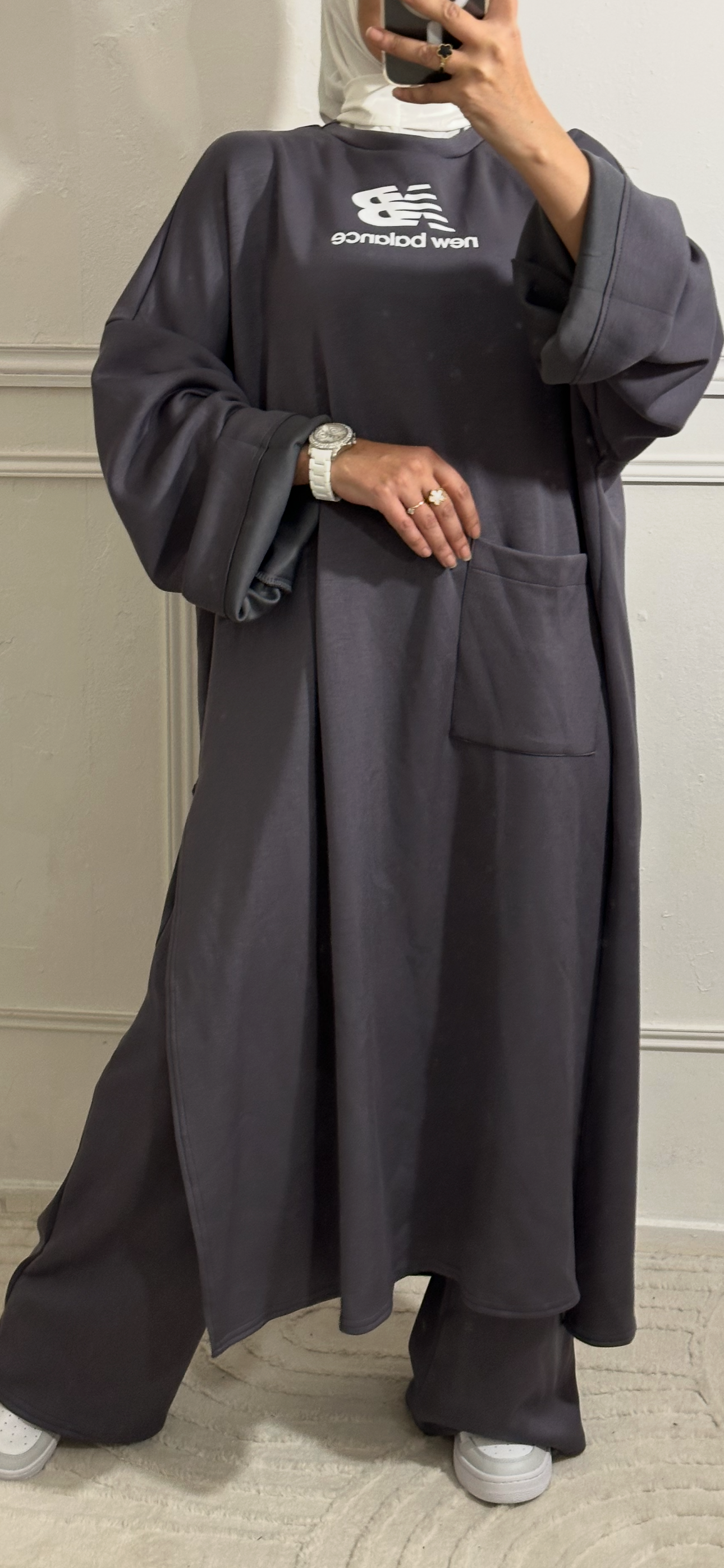 L’ensemble est composé de deux pièces, un pull over size manches bouffante, tissu, fluide et complètement opaque. Parfait pour la saison ainsi qu’un Palazzo taille haute double poche latérale, détail couture sur les jambes.